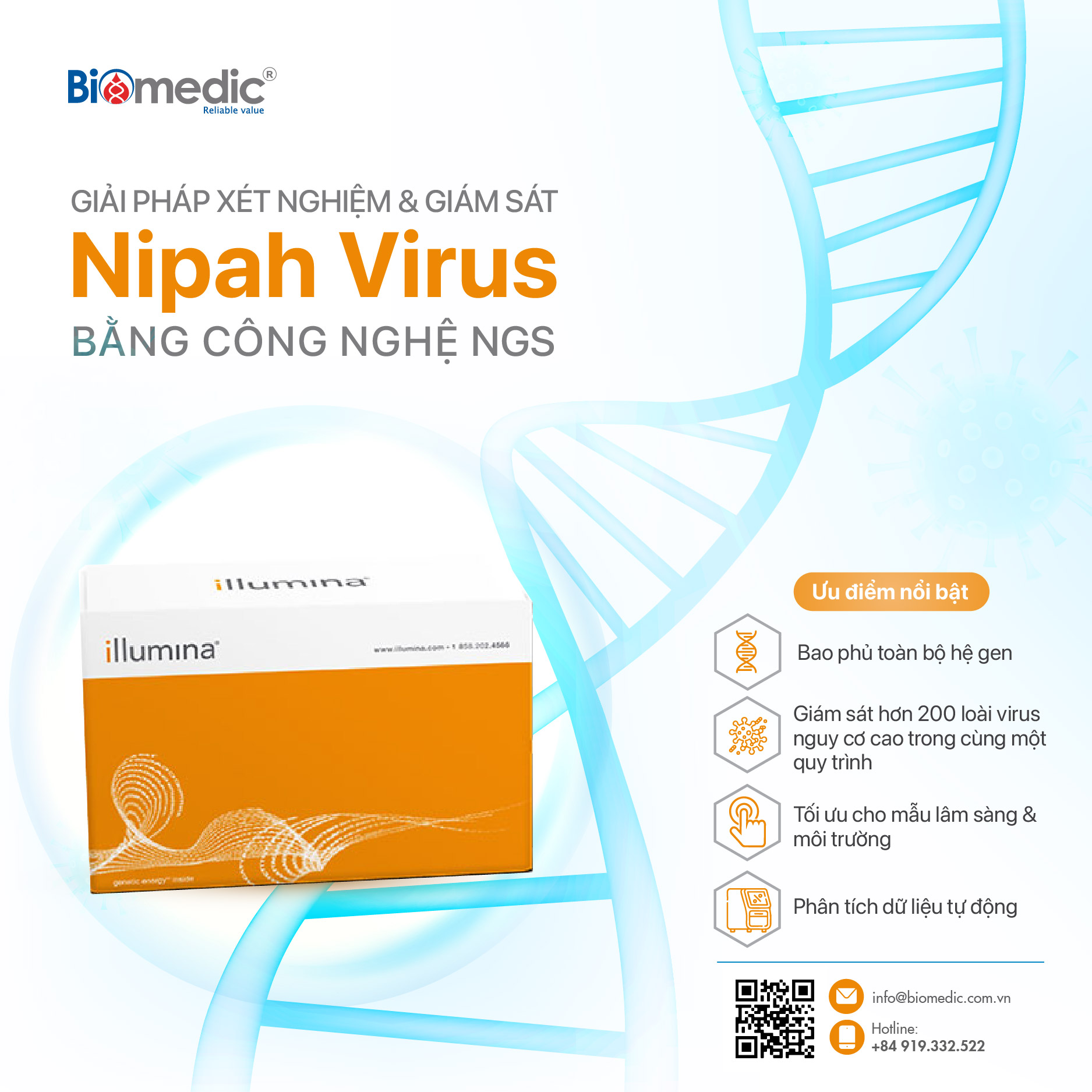 Liên hệ Biomedic để được tư vấn giải pháp triển khai xét nghiệm và giám sát Nipah bằng công nghệ NGS.