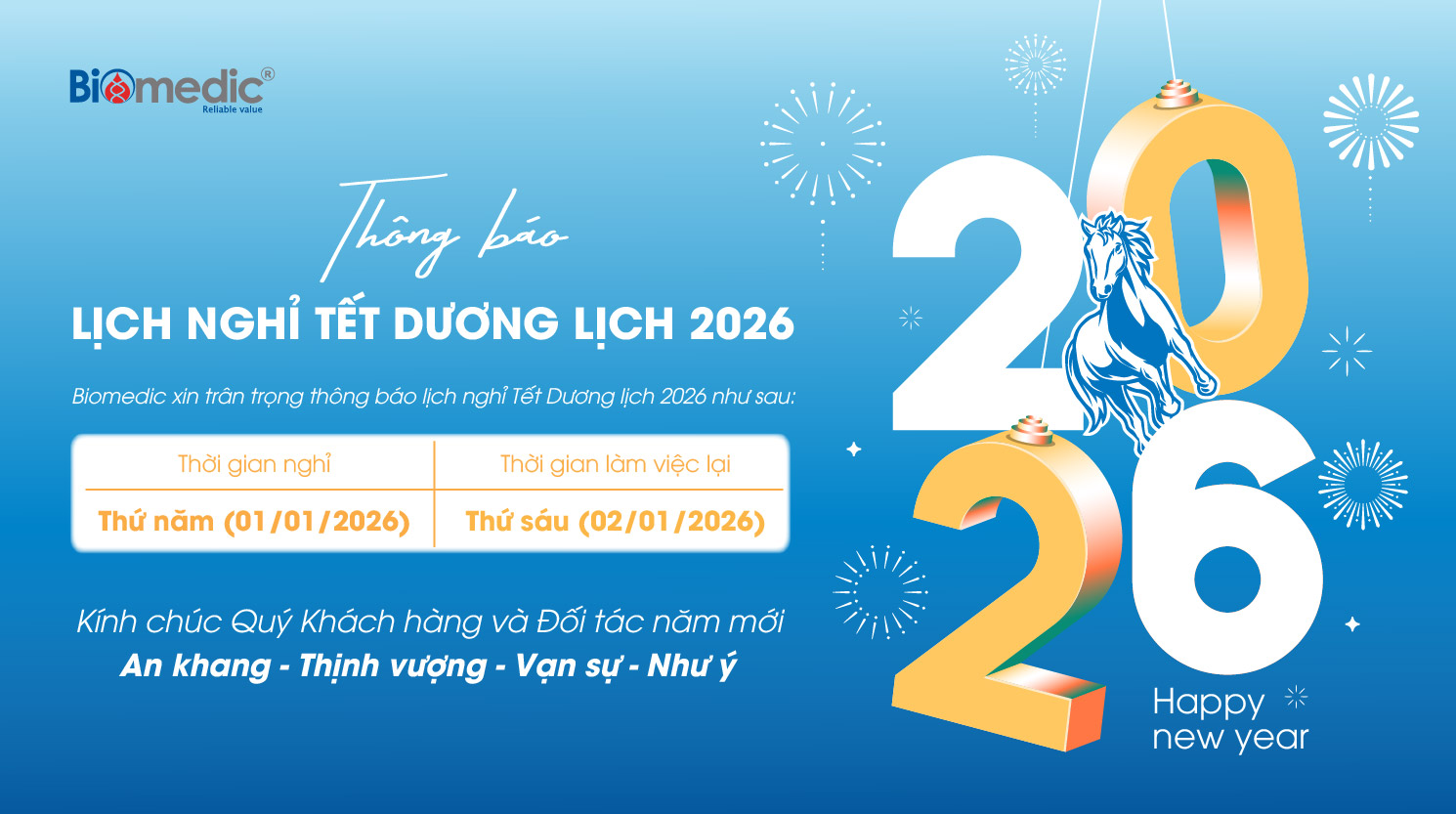 Biomedic chân thành cảm ơn quý Khách hàng và Đối tác đã yêu mến và đồng hành cùng Biomedic trong suốt thời gian qua.
